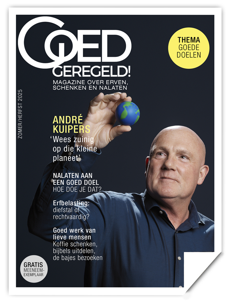 Goed Geregeld! wordt verspreid via de Nederlandse notarissen en erfrechtadvocaten. Wilt u een papieren editie bestellen? Dat kan via deze website of via bol.com. Heeft u genoeg aan de digitale uitgave? Dat kan uiteraard ook (en is gratis).